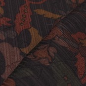 ミルクチョコレート色、ココアブラウン、カラシ色、赤煉瓦色、深緑色のアラベスク模様がデザインされた