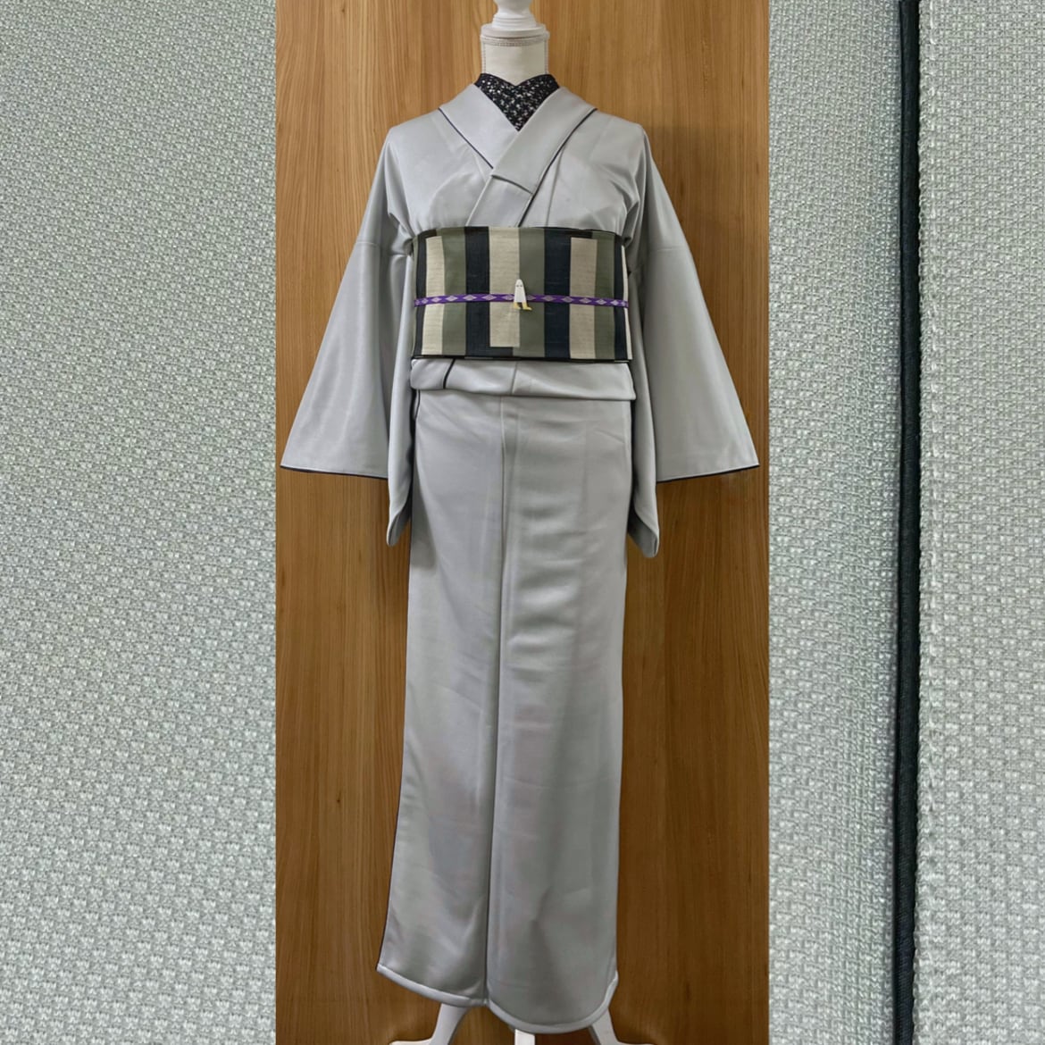 薄雲鼠色(うすくもねず色:薄い雲のような青緑色みの淡い灰色)色無地着物です☺︎