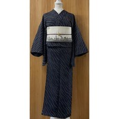 ・商品名:「紺鼠色に変わり斜めストライプの縮緬地小紋着物」