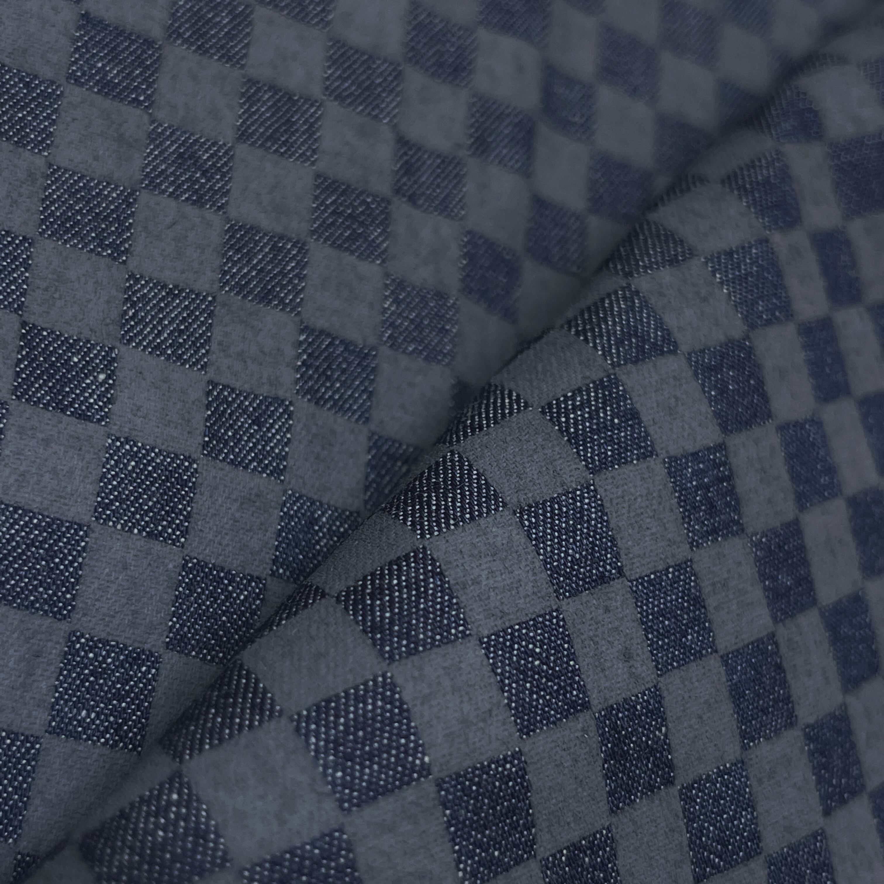 【新品】インディゴブルー×グレーの市松文様デニム浴衣