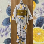 ・商品名:「オレンジ×花模様のポリエステル浴衣(オフホワイト)」