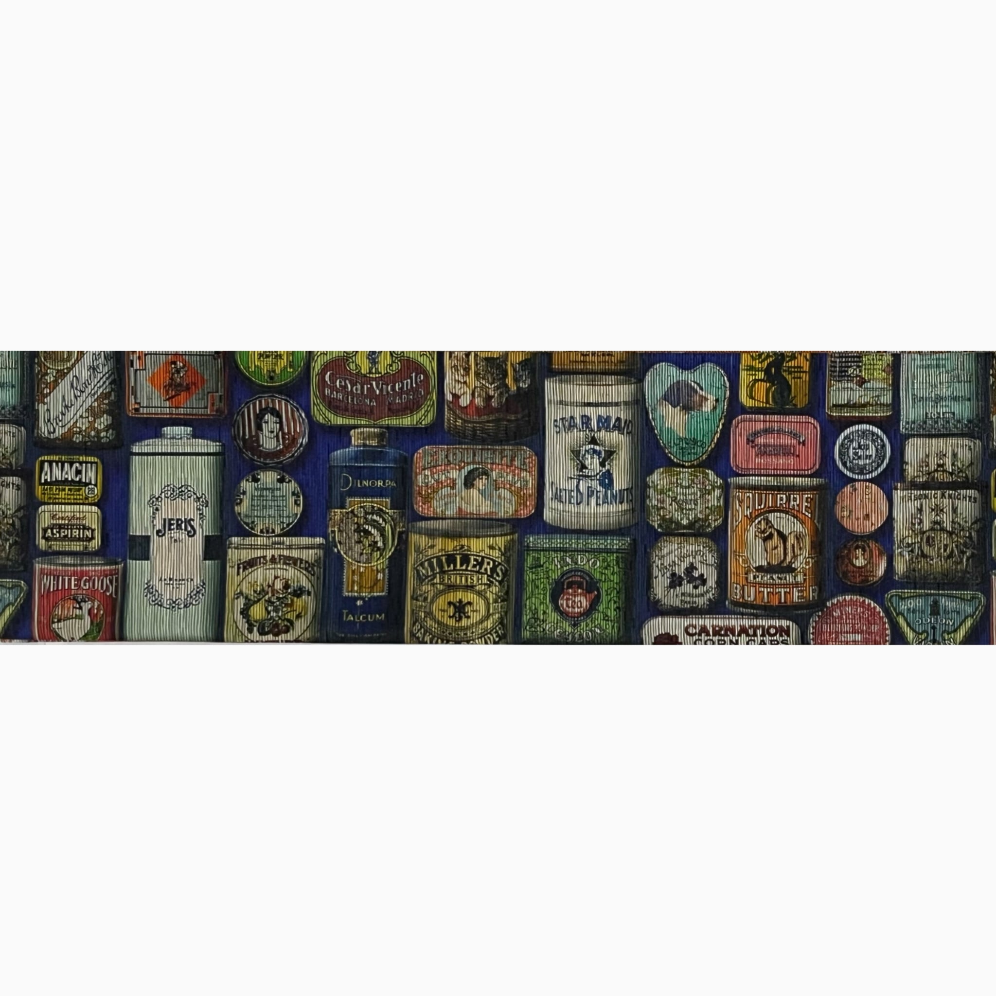 ヴィンテージの個性的な缶や瓶のラベルがリアルにデザインされた洋風で個性派な半幅帯です☺︎