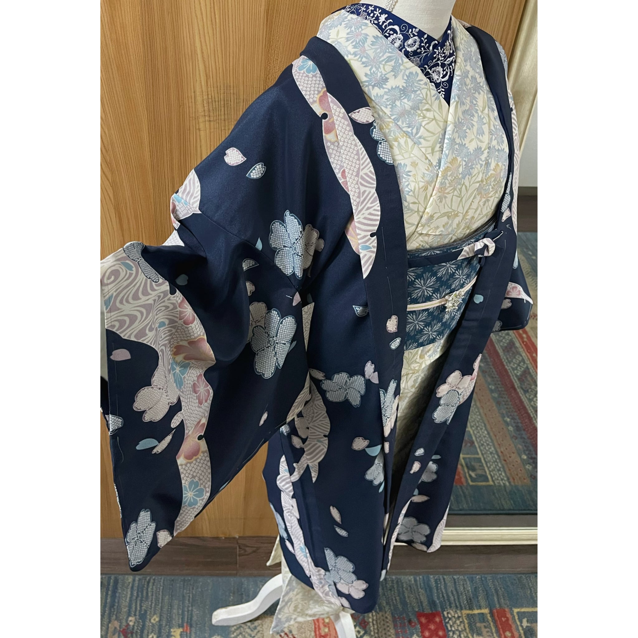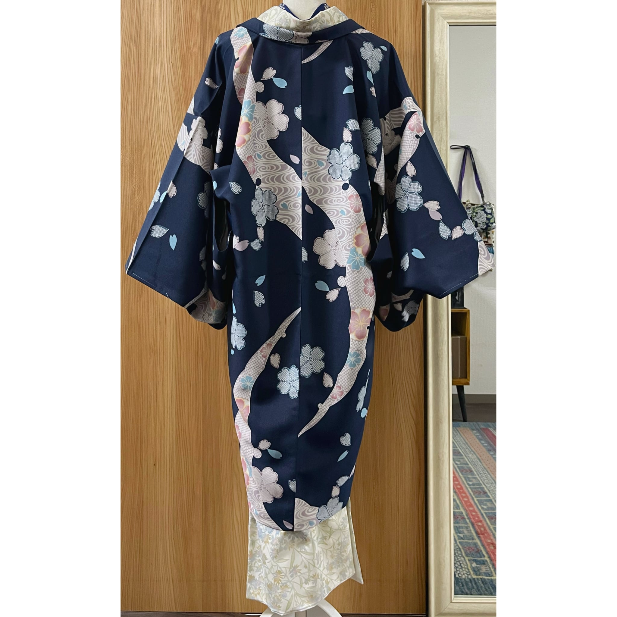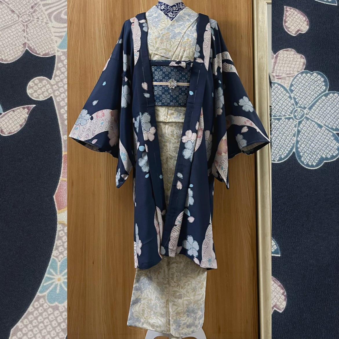 ・商品名:「新品 紺色に疋田桜文様の洗える長羽織り」