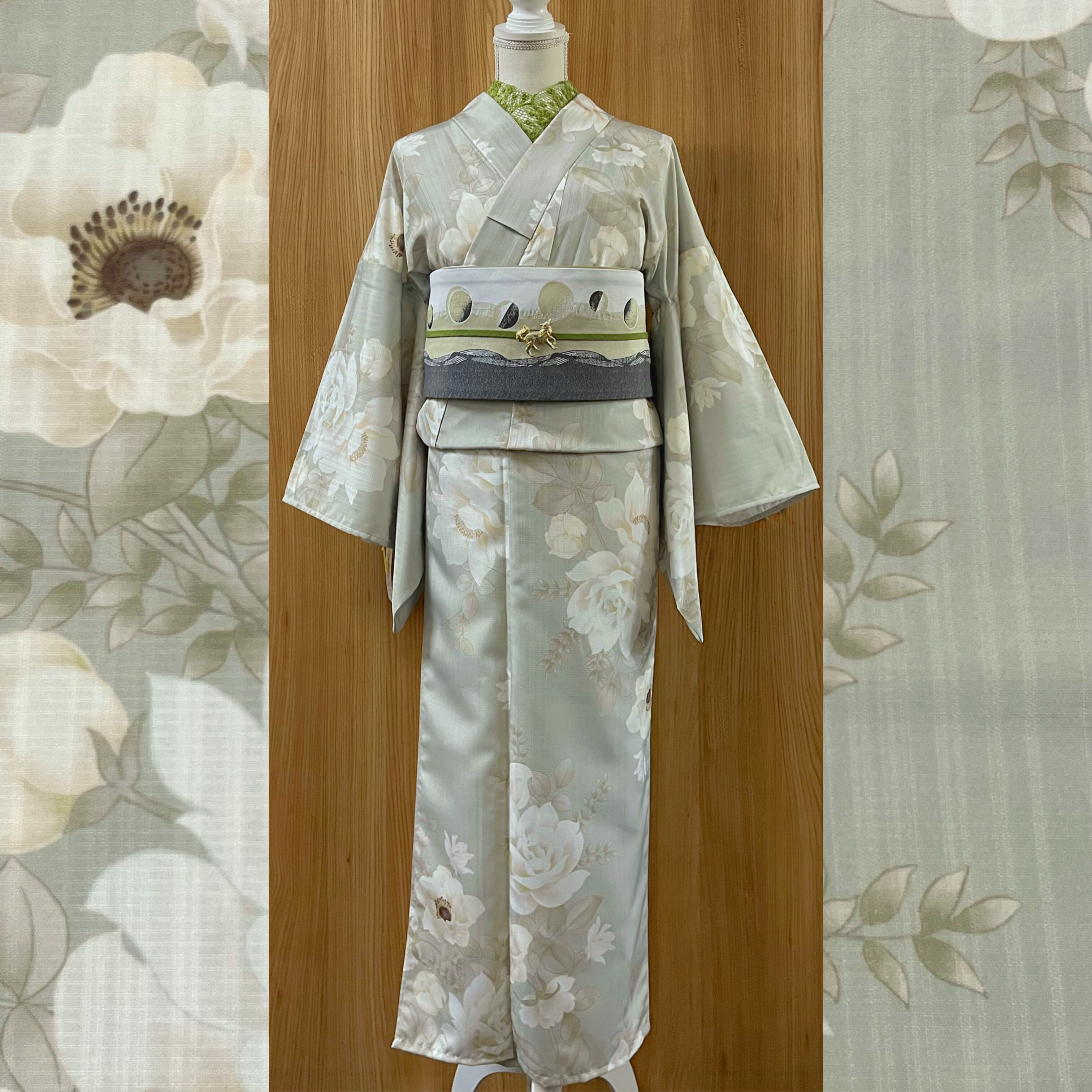 ・商品名:「新品 灰黄緑色に薔薇模様のポリエステル浴衣」