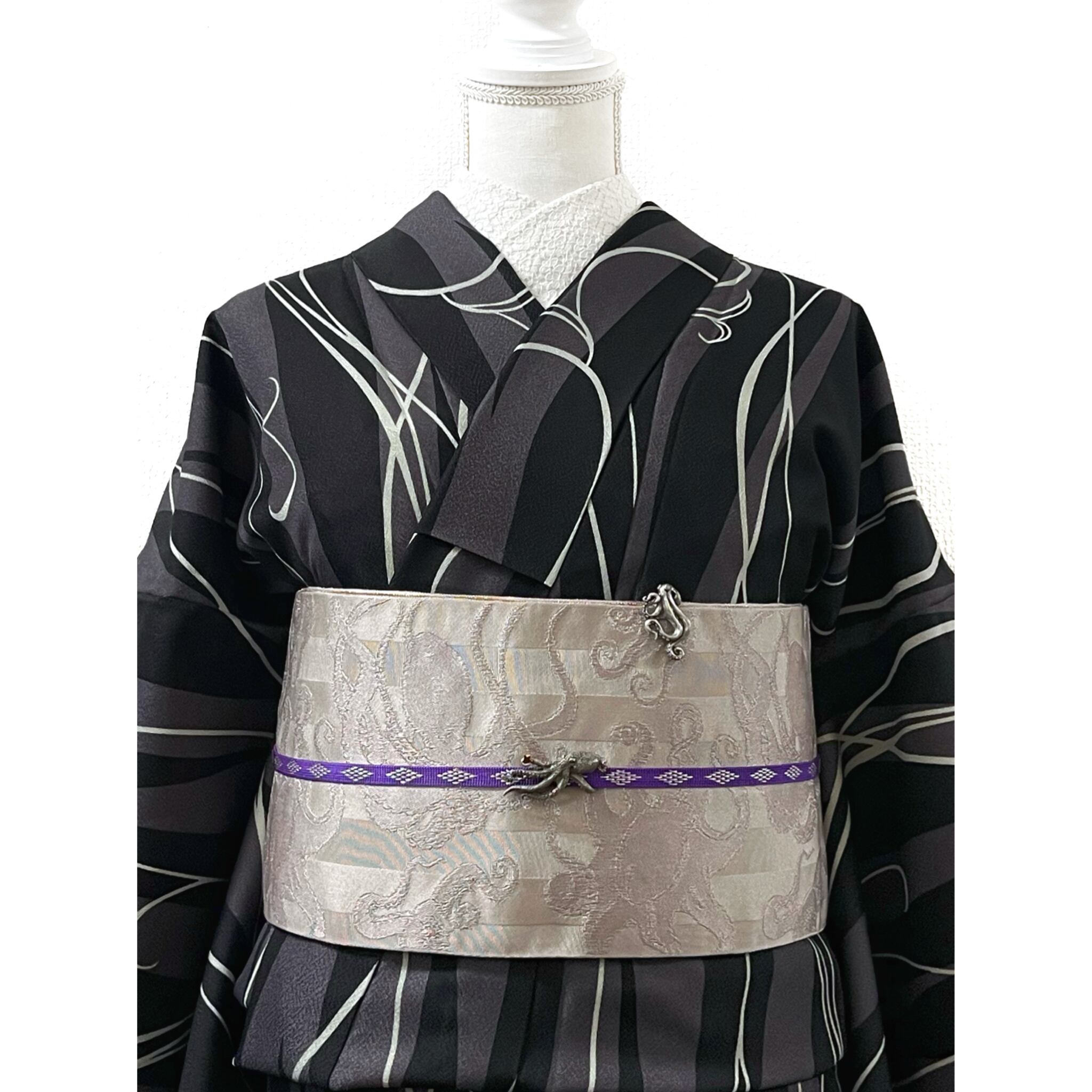 着物、帯、帯留め等は付属しておりません。ご注意下さいませ。
