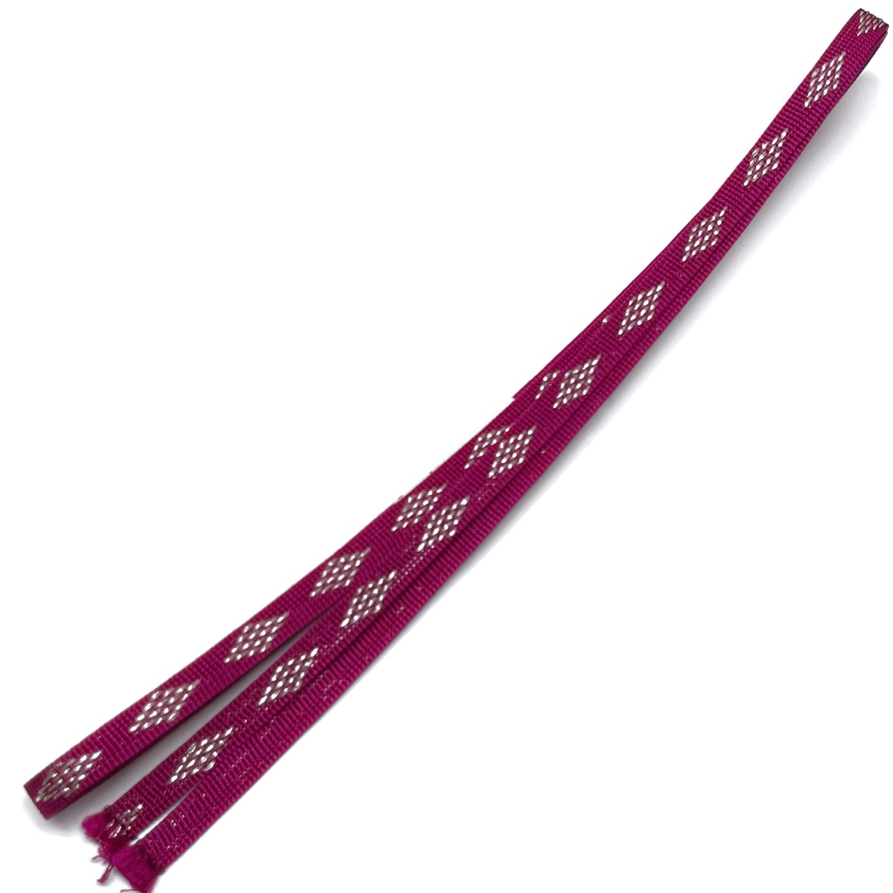 色柄説明:紫式部色(赤みのある渋い紫色)に銀色のダイヤ柄が織り込まれたの三分紐です。