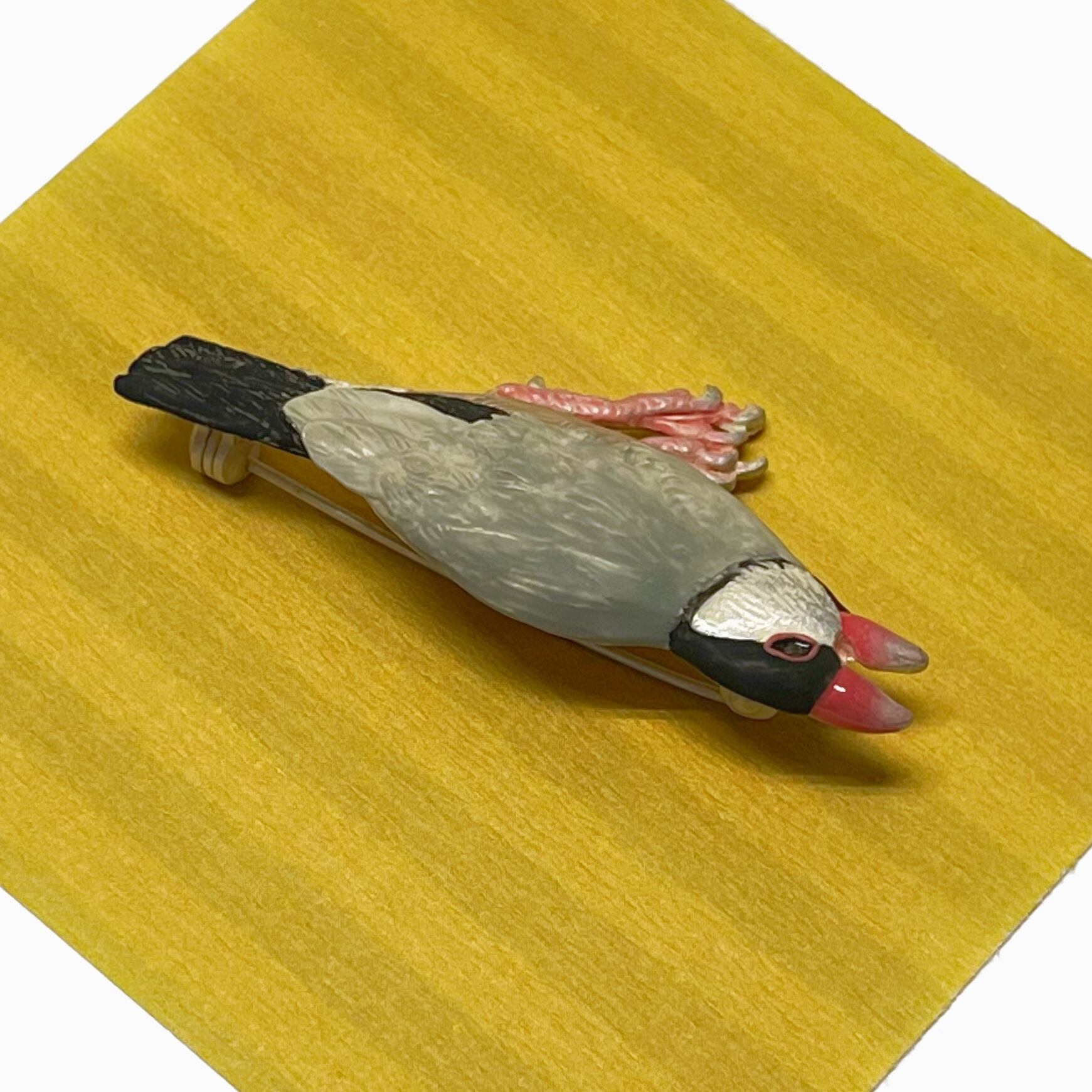 【新品】パルナートポック 文鳥ブローチ(グレー)