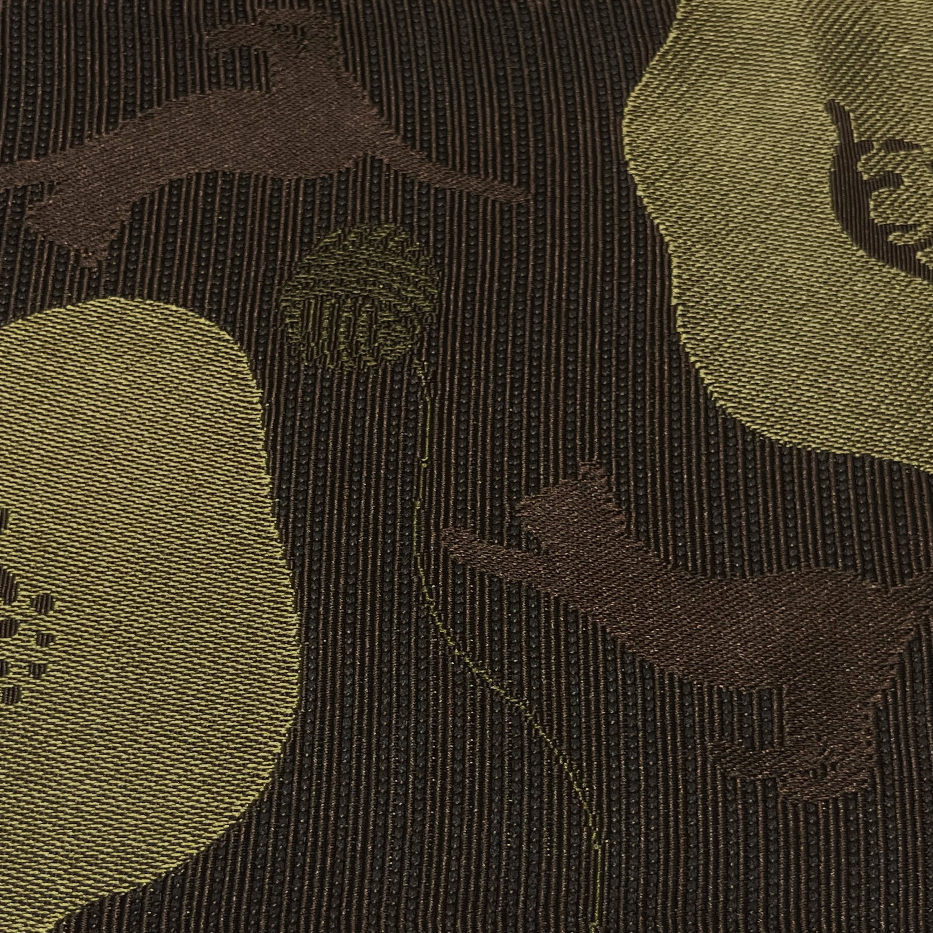 リバーシブルの裏側は岩井茶色(やや茶みがかった黄緑色)と墨色の花・ドット模様です。