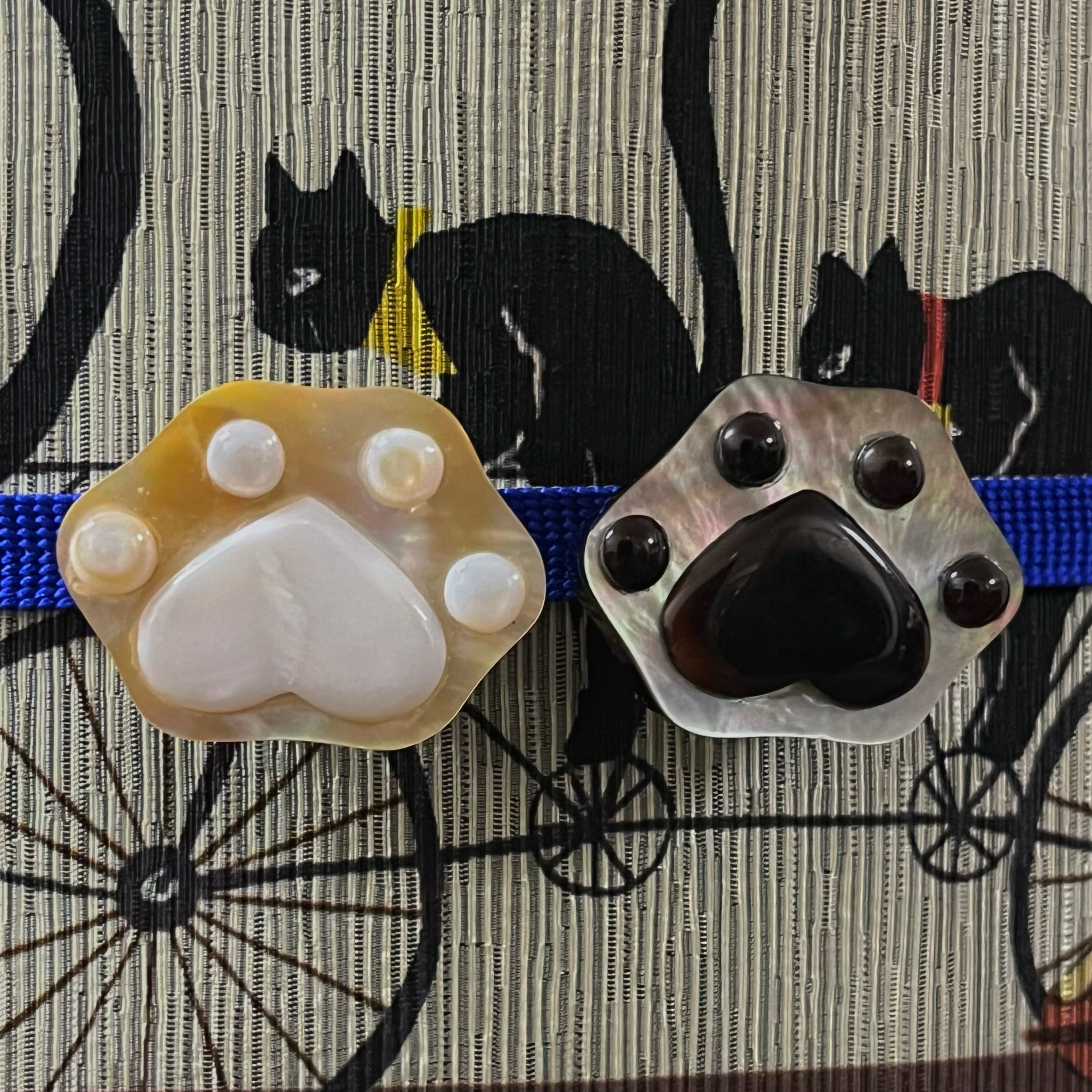 色・質感:オリーブグレーのボディに黒色のぷっくりとした肉球がデザインされたキュートな帯留めです☺︎
