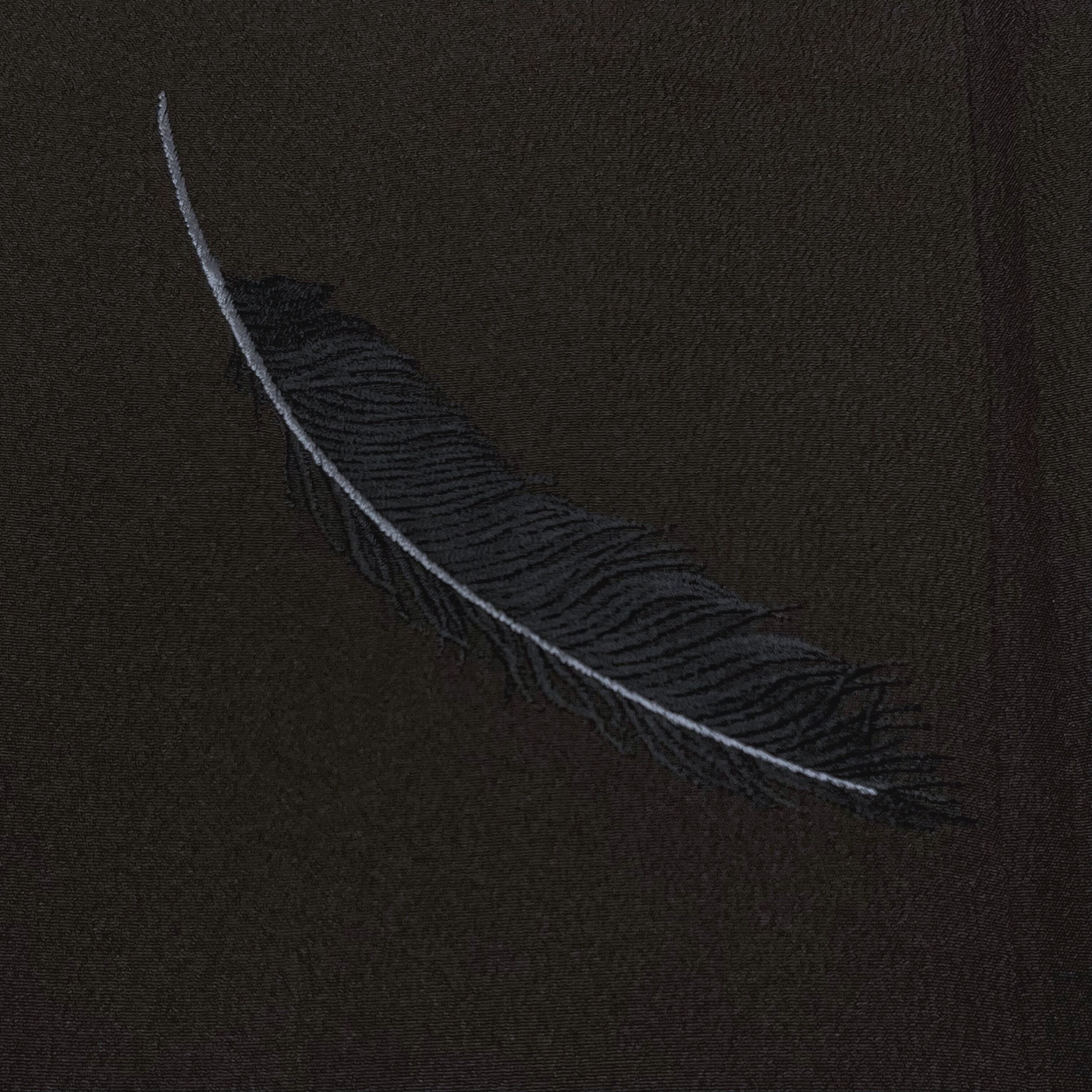 左袖後ろにカラス刺繍と、左衽部分に一枚羽の刺繍が施されたお渋で格好良い付下げ着物です☺︎