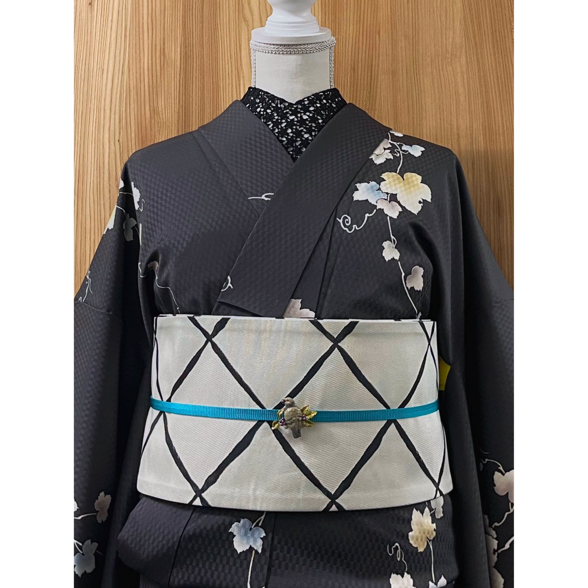 色・質感:ムラサキシキブの実をついばむカワラバトモチーフな帯留めです☺︎