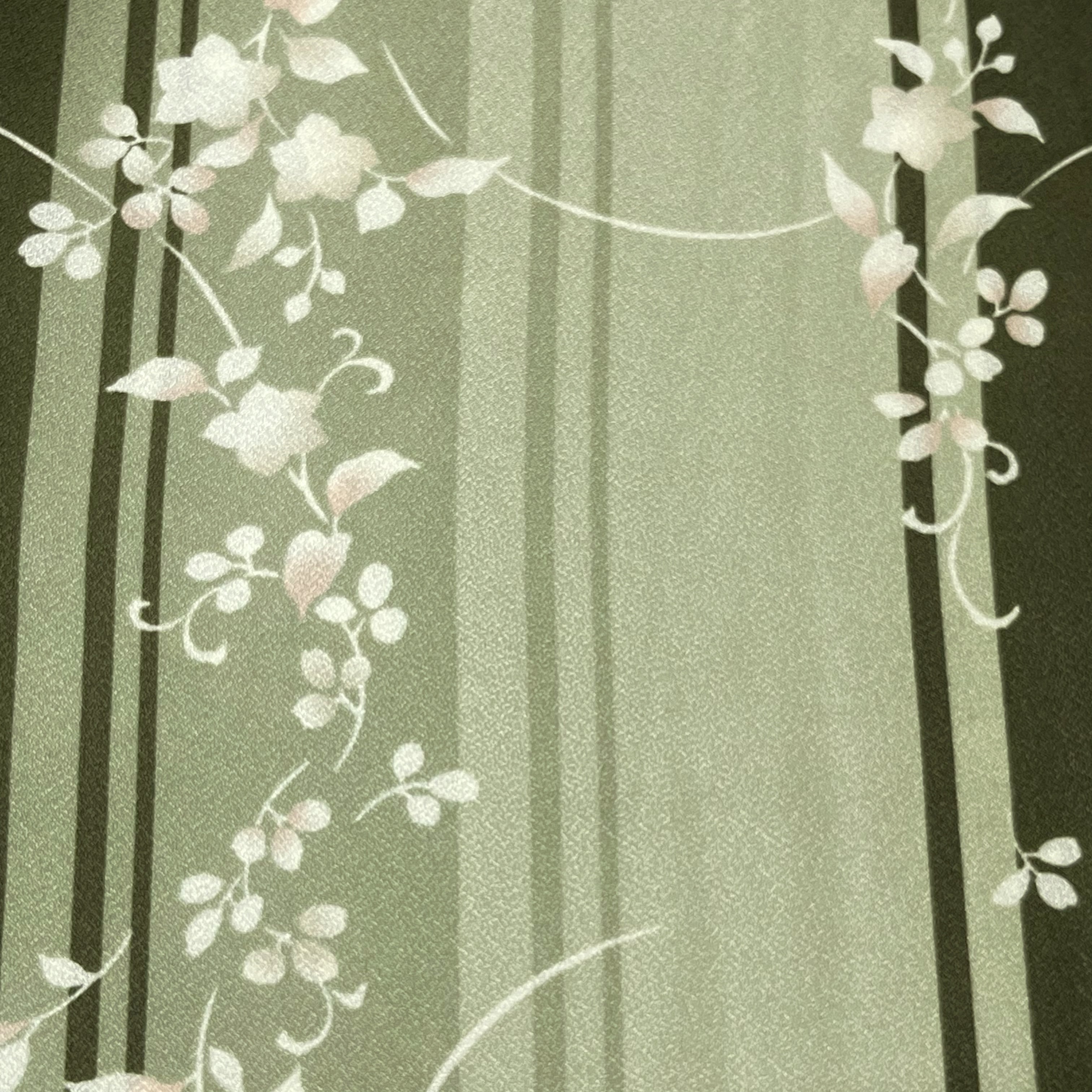 【新品】【Sサイズ】薄緑色のランダムストライプに草花模様の洗える単衣小紋着物