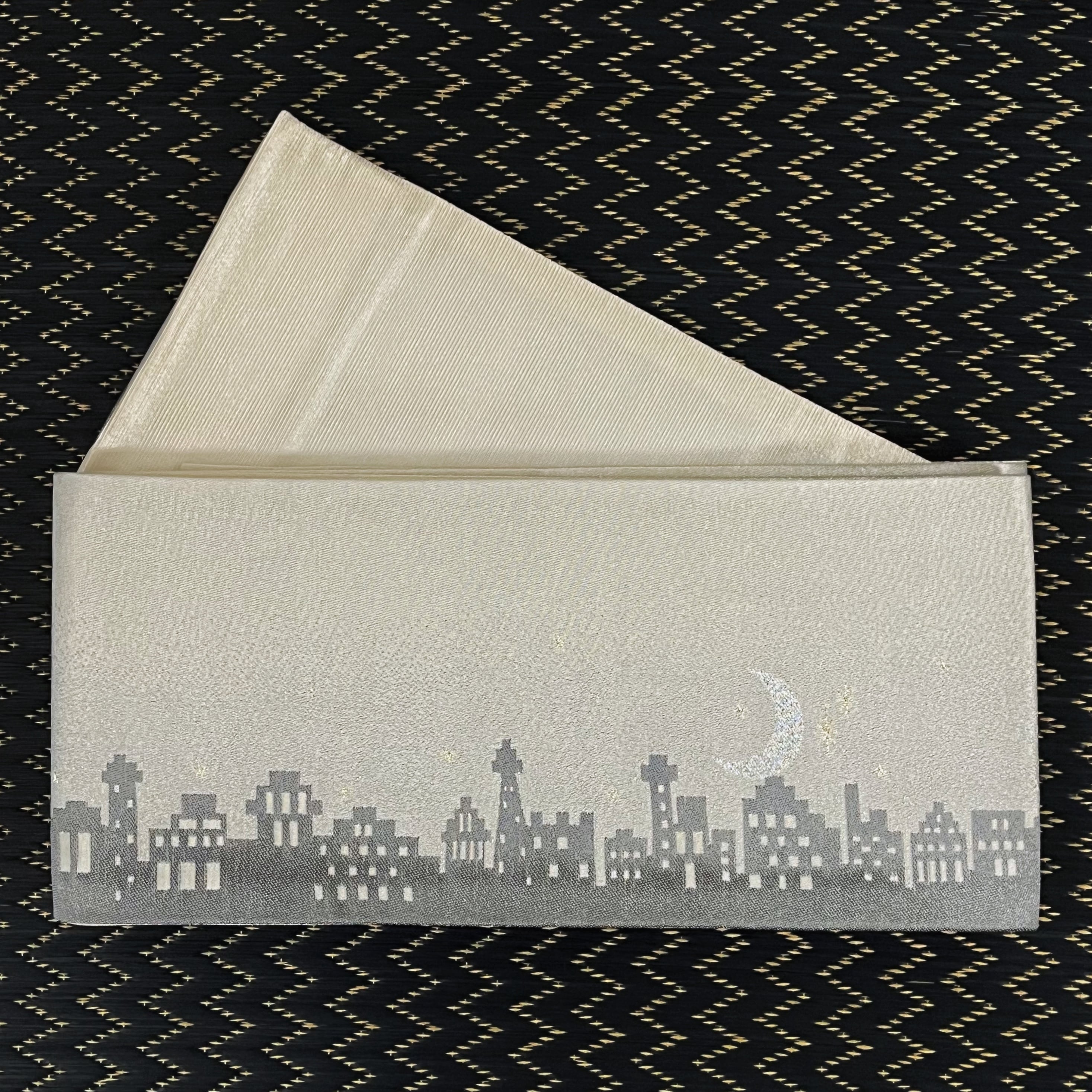 商品名:「月夜の街並み模様のリバーシブル半幅帯(オフホワイト)」