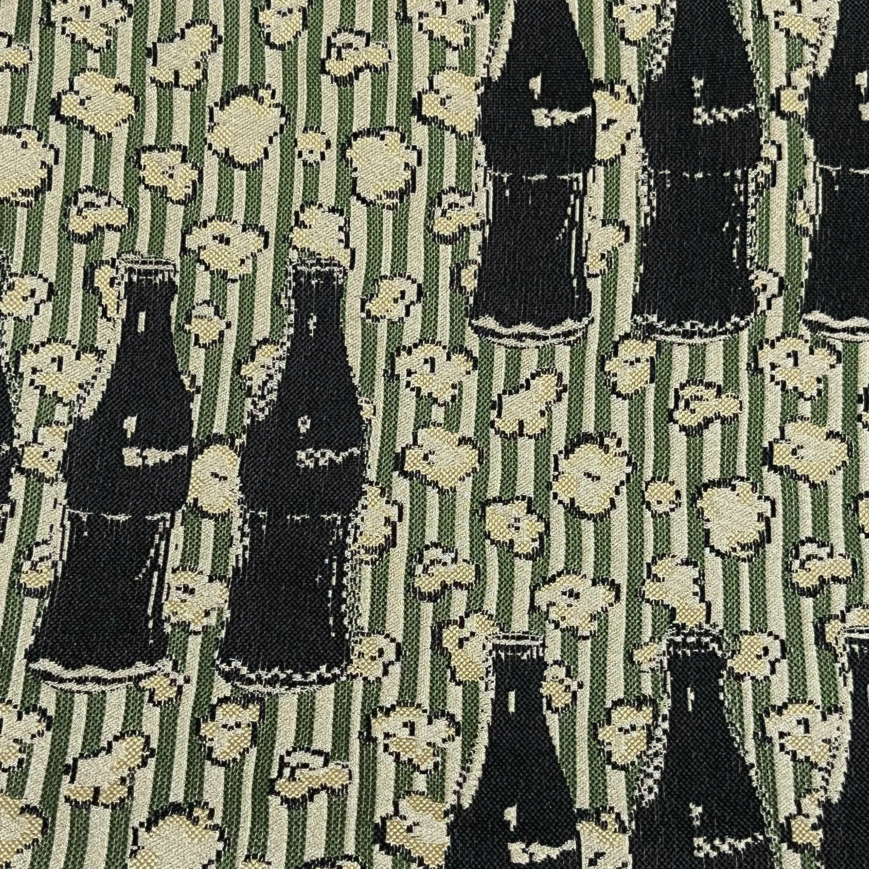 色柄説明:オフホワイト×老竹色(灰みの緑色)のストライプ地に