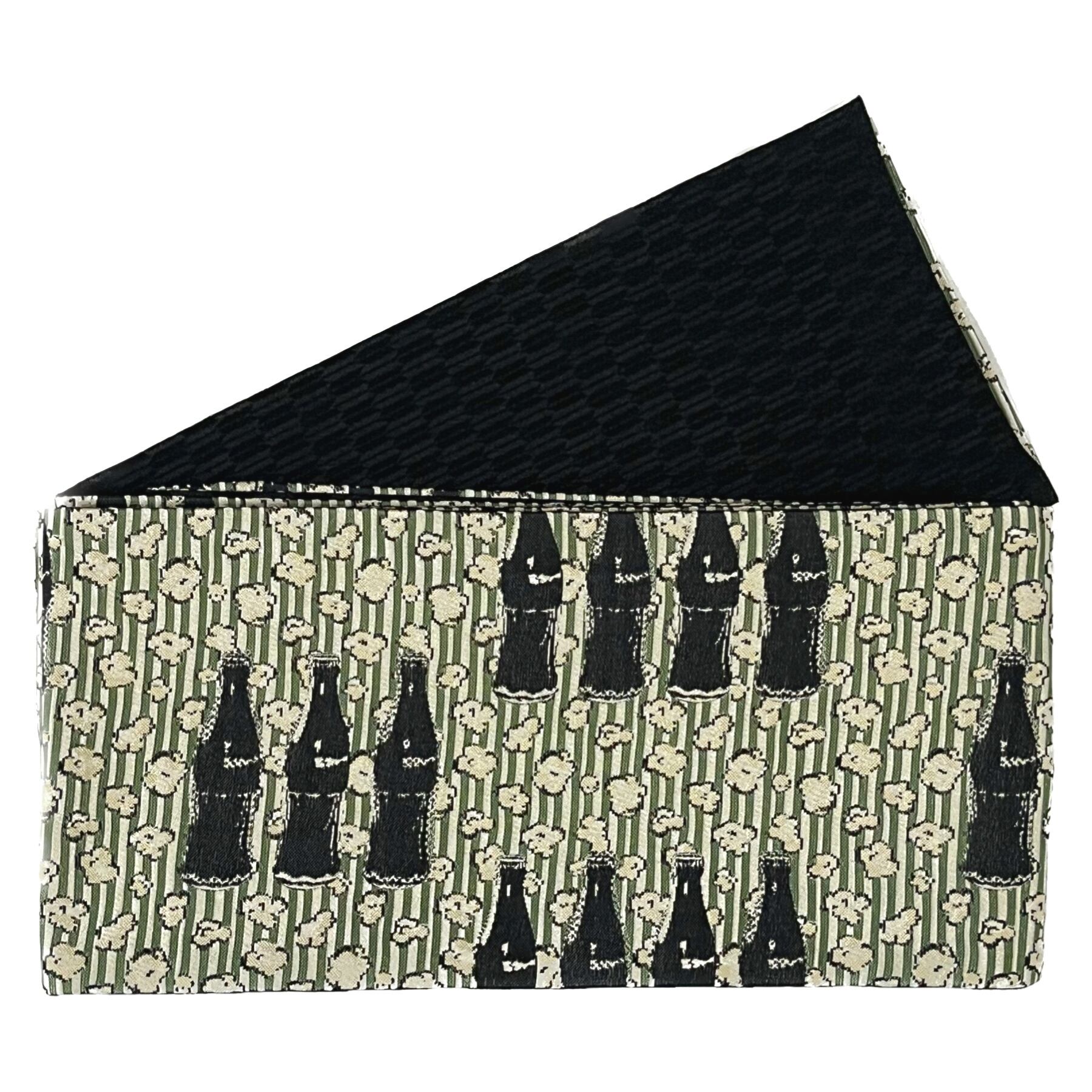 商品名:「おりびとコーラにポップコーン柄のリバーシブル半幅帯(老竹色)」