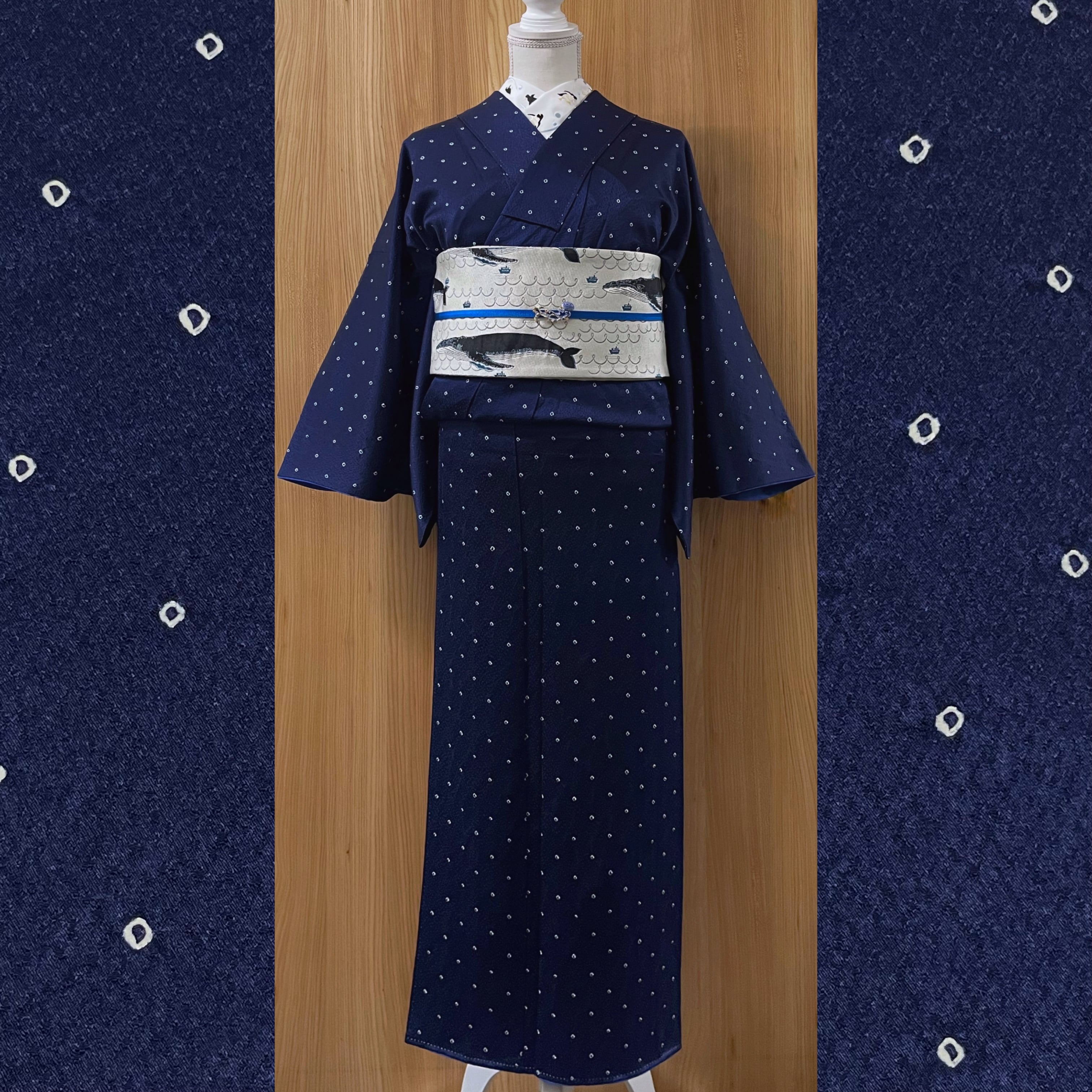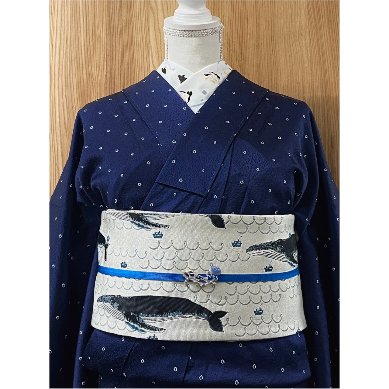 ・色柄説明:霰文様の織柄が入った艶感のあるミッドナイトブルー(紫がかった黒に近い青)地に