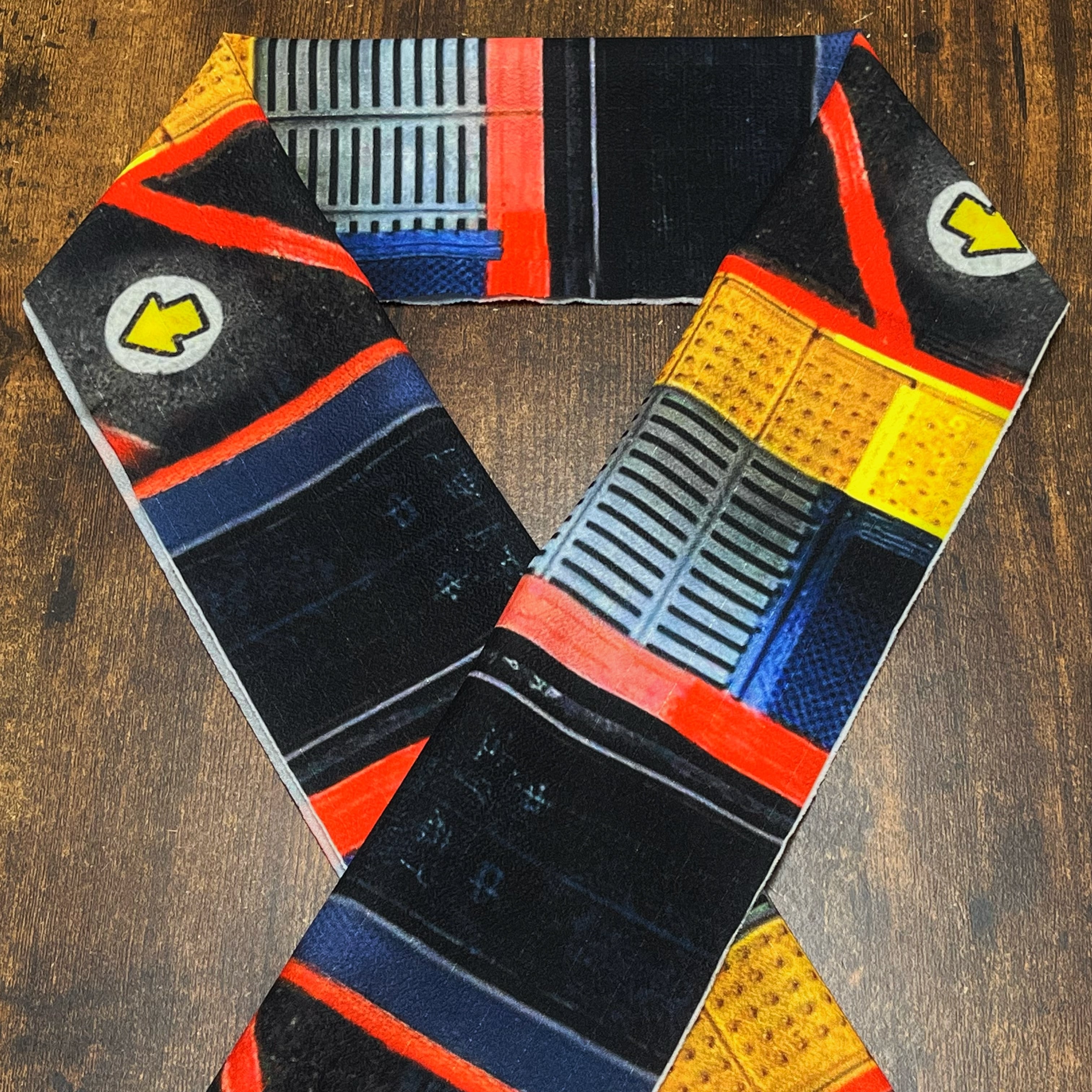 ホームの足元はゴムや赤い斜線が半分を占め、黒、青、黄色、赤といったカラーパレットがとても魅力的な一品です☺︎